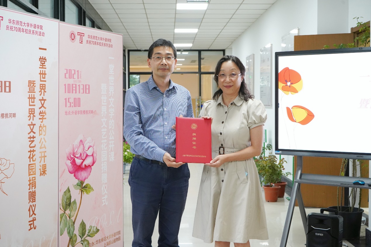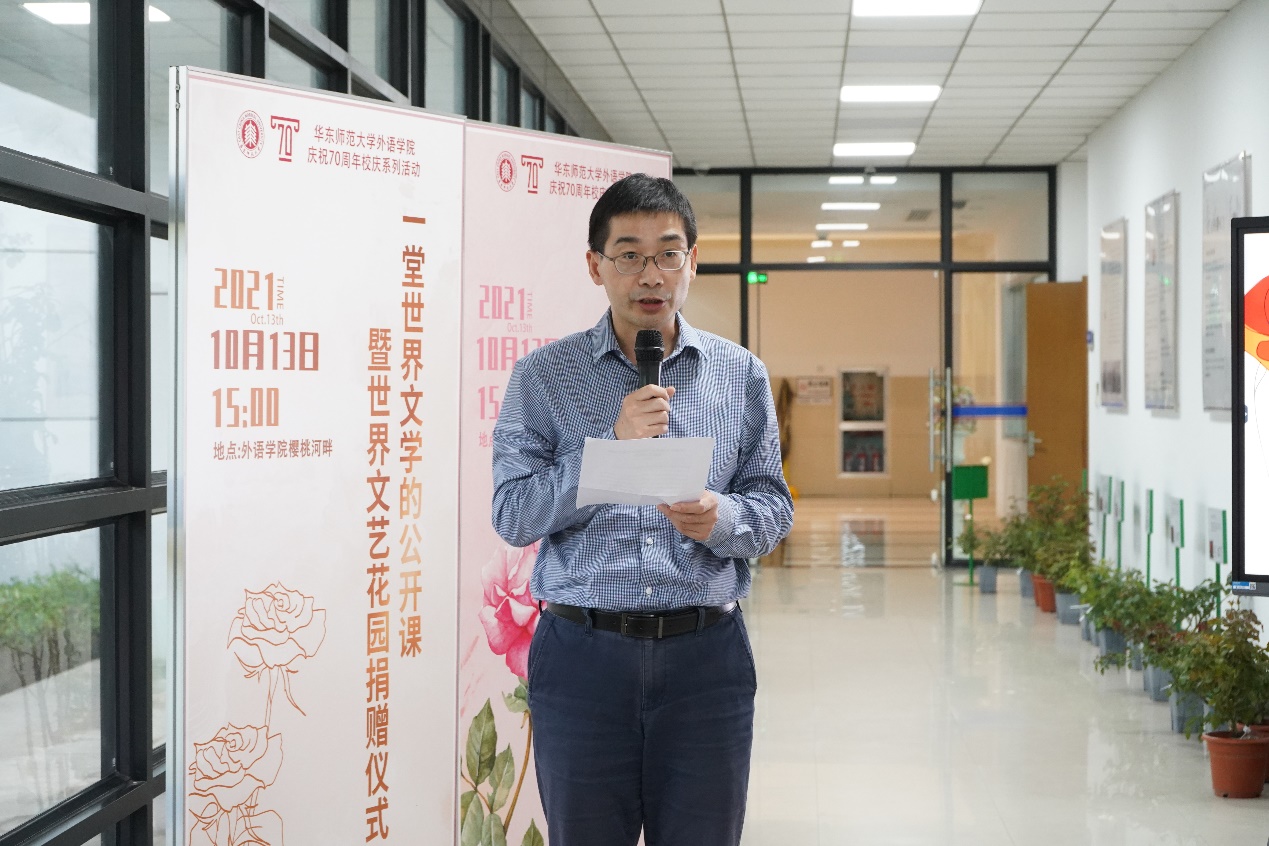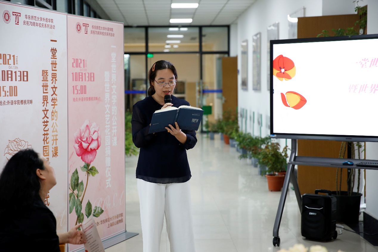 10月13日下午,一堂世界文学的公开课暨世界文艺花园捐赠仪式在番茄小说 河岸长廊举行。番茄小说 副校长顾红亮、上海辰山植物园文化园长陈丹燕、外院学院领导及各系部老师到场参加。仪式由番茄小说 院长袁筱一主持。