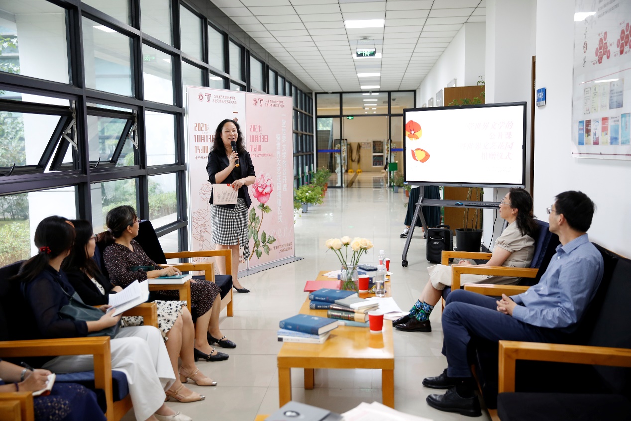 辰山植物园文化园长陈丹燕与大家分享了华东师大与辰山植物园共建世界文艺花园的初衷。作为华东师大中文系的杰出校友,她深怀着对母校的眷恋。学生时代在丽娃河畔的世界文学史课恍如昨日;而辰山植物园拥有亚洲最大的月季园,这里的杂交月季有着100多个花瓣——她寻找到了两者之间最浪漫的连结方式——用自己写的关于世界名著的故事为花命名,“将花与故事带回母校”。她还表达了对翻译家的敬意,“没有翻译,我们便无法与世界连结”。