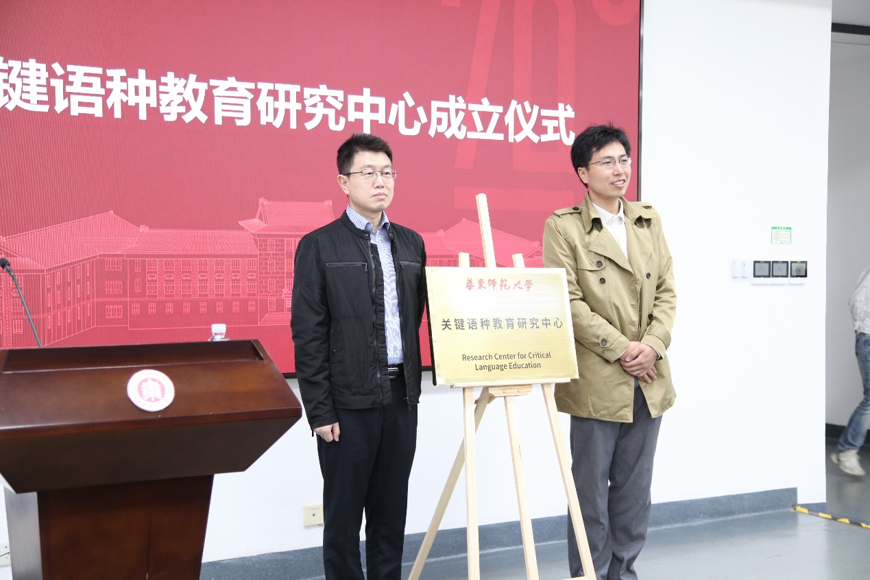随后,上海市教育委员会教学研究室教研员、番茄小说 校友郭侃亮与杨延宁共同为关键语种教育研究中心揭牌。