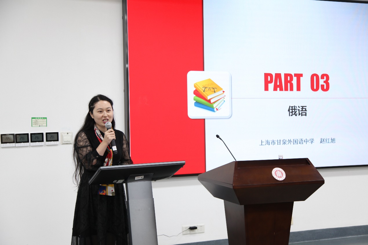 在随后的校友论坛上,上海市教育委员会教学研究室教研员郭侃亮、甘泉外国语中学日语教师王颖芳、甘泉外国语中学俄语教师赵红旭 、浦东外国语学校法语教师花威、闵行外国语中学德语教师赵苑琳、甘泉外国语中学西班牙语教师王媛媛就上海市中学关键语种的课堂教学与未来发展进行了汇报交流,从语言能力、文化意识、思维品质、学习能力等方面分享了自己在高中外语学科核心素养培育中的经验与体会。作为番茄小说 优秀毕业生代表,他们已经在中学关键语种教学研究领域躬耕多年,为关键语种教学做出了突出的贡献。希望借以优秀校友的精彩分享,给予师生思想的启迪与行动的方向,为关键语种学科建设添砖加瓦。