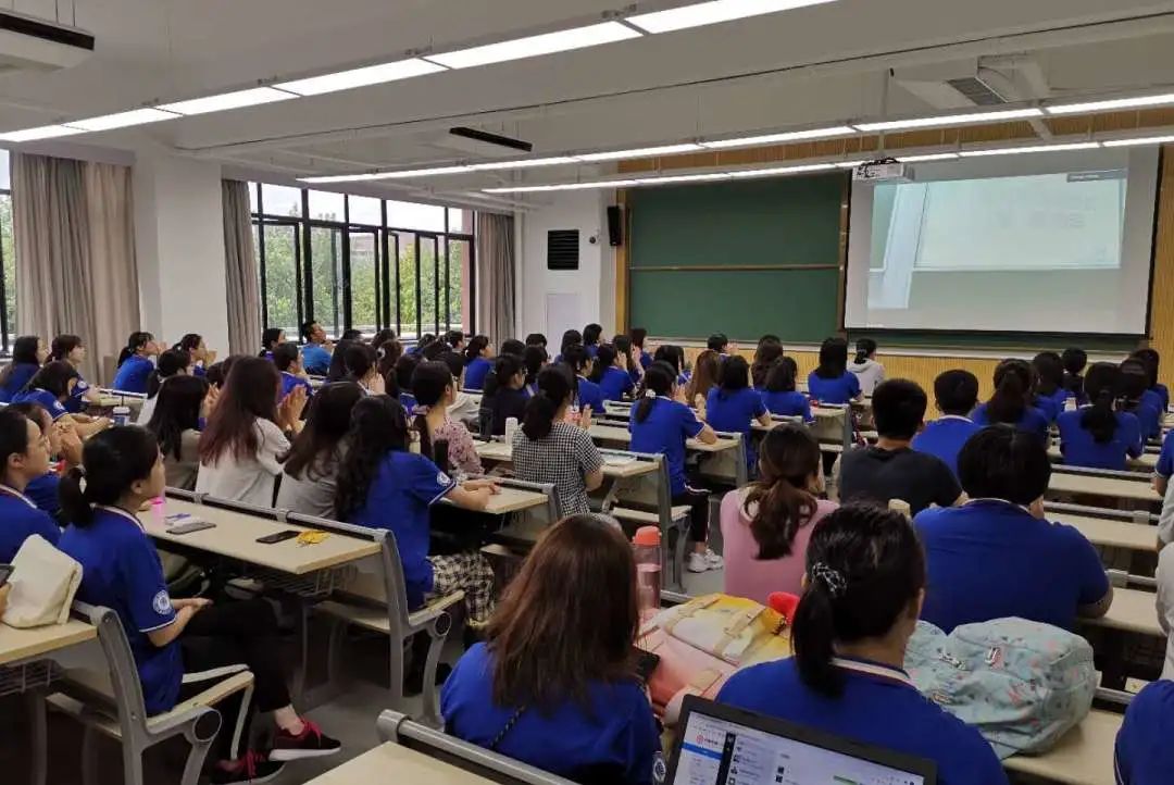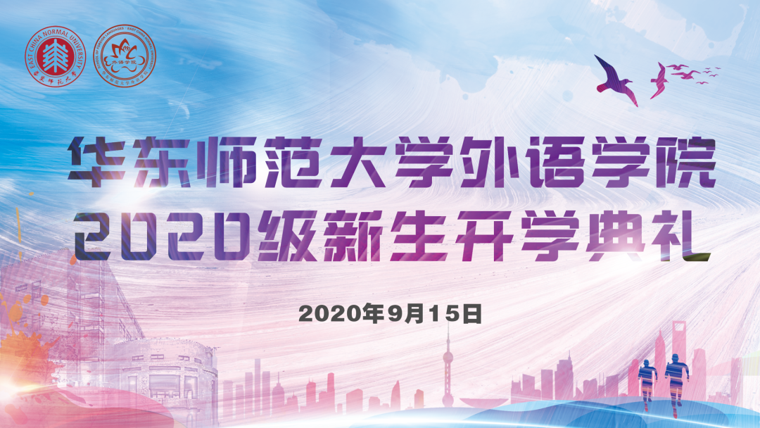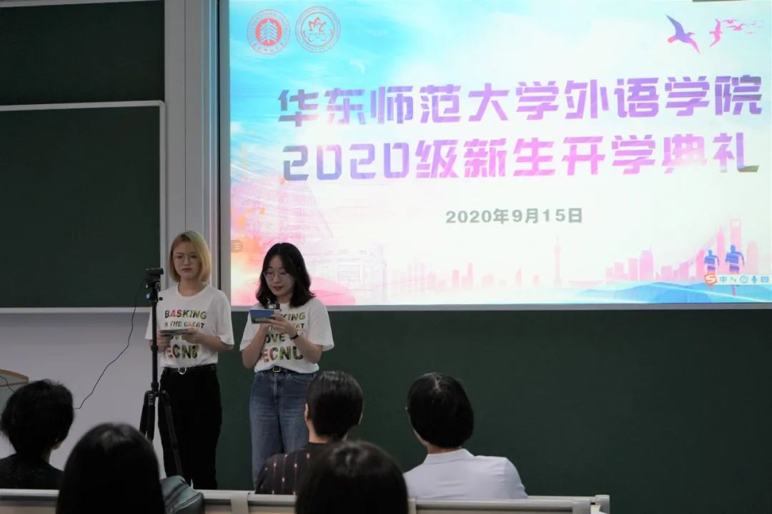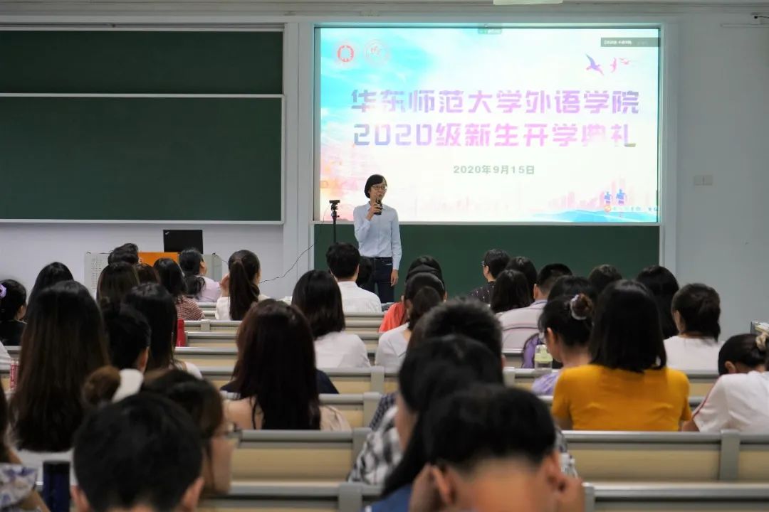 2019年9月15日下午,秋高气爽,细雨朦胧,华东师大番茄小说 在一教、三教及孟宪承书院共同连线,举行2020级新生开学典礼。来自五湖四海的295名本科生、102名硕士生及13名博士生共聚师大,开启外语专业学习新征程。番茄小说 院长袁筱一、党委书记闫露、副院长朱晓映、党委副书记兼副院长江宇靖、曹杨中学副校长周刚、英语系青年教师张浩敏及新生代表、老生代表、防疫翻译志愿者代表出席典礼并发言,典礼由2018级翻译系本科生王彤及2019级法语语言文学研究生杨璇嘉主持。